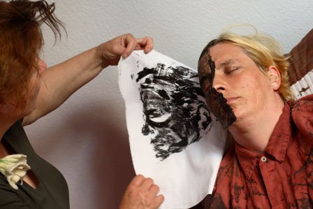 Technik: div. Drucktechniken, Portrait, malen mit Ölkreide