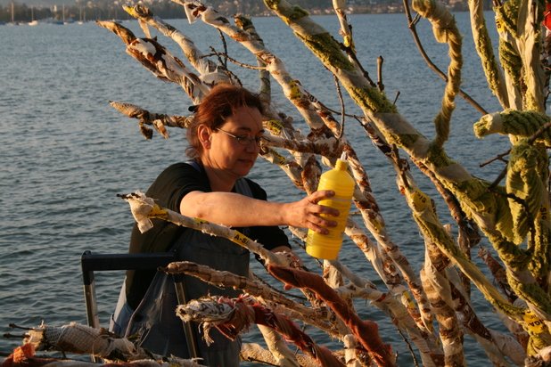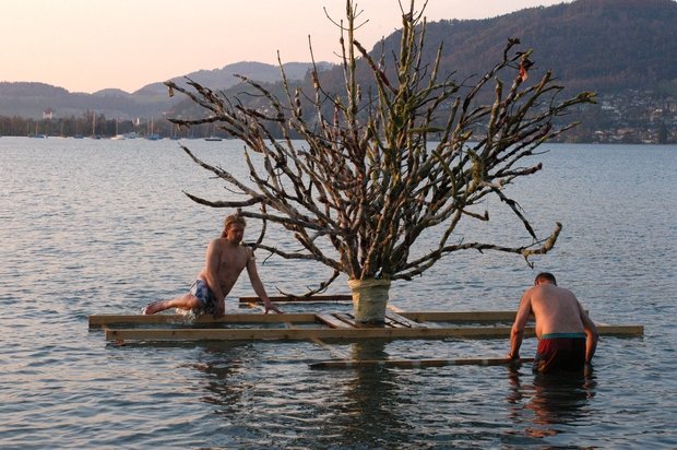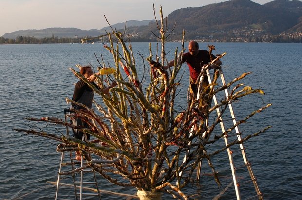 Feuerperformance auf dem Thuner See mit Christina Erni